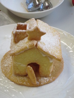 ヘキセンハウスはクリスマスに作られるドイツのお菓子らしいです。まず、壁や屋根などをクッキーで作るのですがこれが大変!!ここまでに午前中かかりました。