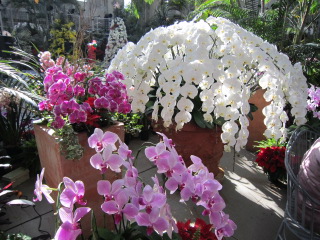 温室に入るとサンタが出迎えてくれ、蘭で大きなツリーが作ってあったり、色とりどりの蘭が咲いていた。