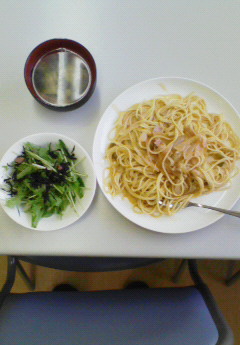 サラダは水菜とひじきを梅干であえたもの、汁物はかきたま汁を作りました。