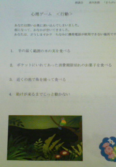 「夢」がキーワードのストーリーだったので、「夢」の話題になり、その後心理ゲームでお互いに自分の事を語り合いました。