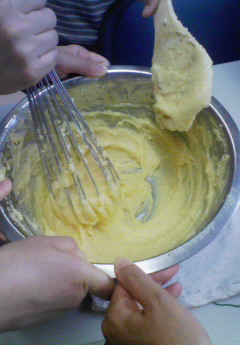 シュークリーム作りは初体験で、ワクワクしながら手伝いました。