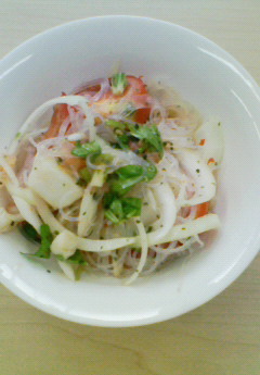 メニューは ガパオ(写真左)&ヤムウンセン(写真右) で、とっても美味しくできました。