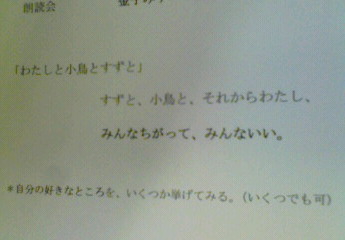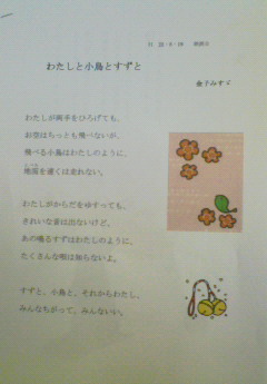 今日の朗読会は金子みすずさんの「わたしと小鳥とすずと」「犬」を朗読しました。