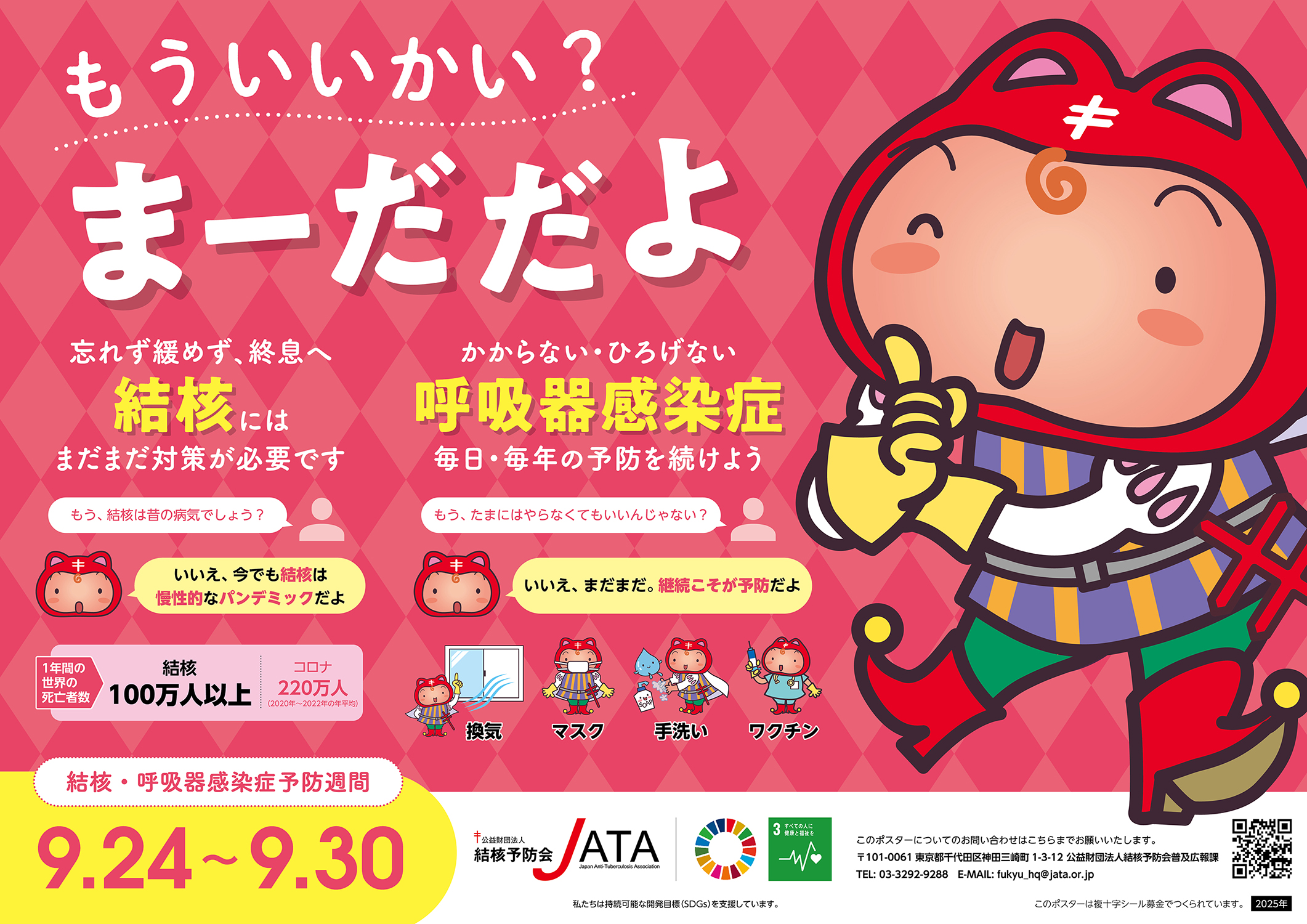 毎年9月24~30日は、厚生労働省、公益財団法人結核予防会等が主催する「結核・呼吸器感染症予防週間」です。